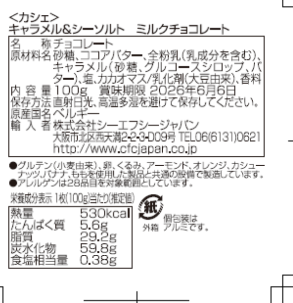 カシェ キャラメル&シーソルト ミルクチョコレート 100g×12枚
